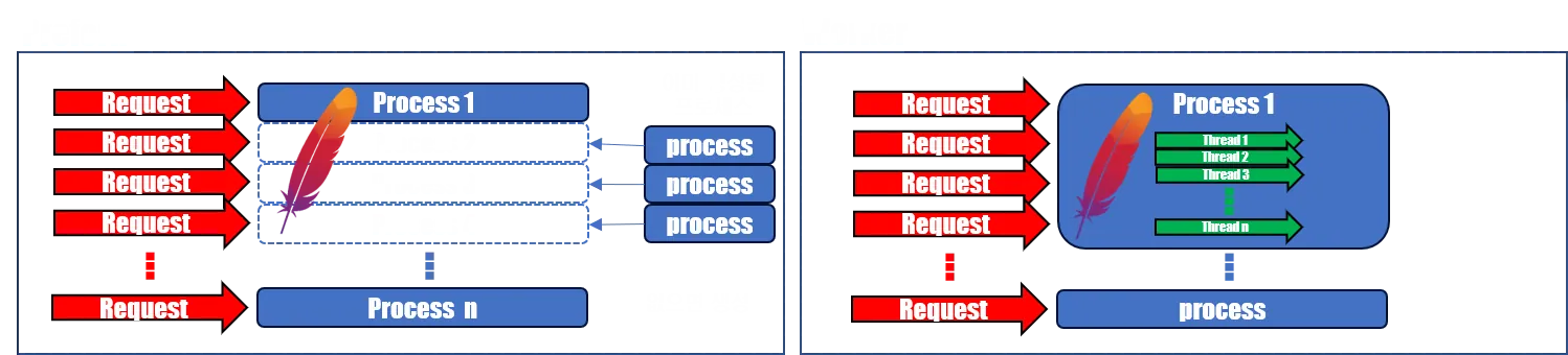 ※ 참고로 prefork MPM방식 외에도 Worker MPM라는 방식으로 요청을 할 수 있다.
