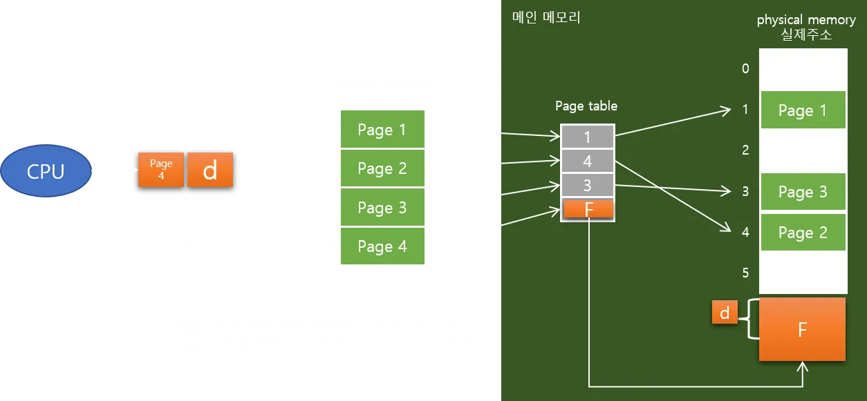 - OS는 페이지 테이블을 확인하여 가상 메모리에 페이지가 존재하는지 화깅ㄴ하고, 없으면 프로세스를 중단하고 현재 물리 메모리에 비어있는 공간이 찾는다. 그 조차도 없으면 스와핑이 발동된다.